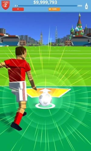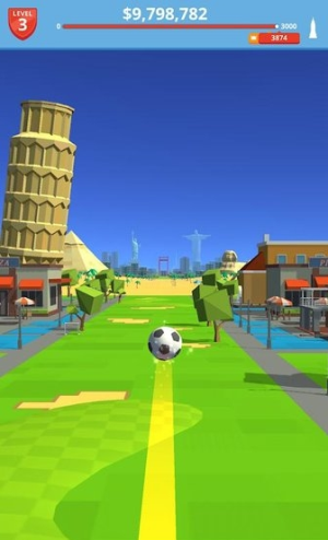 2、魔性上瘾的挑战玩法,每次踢球都充满变数,让人忍不住反复尝试突破纪录。看着足球飞越不同地标,成就感十足。