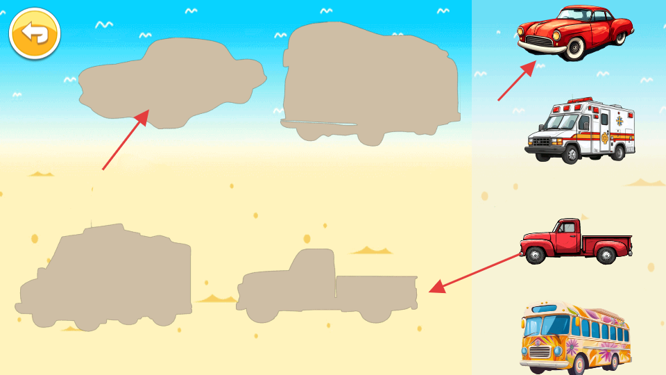 1、视听趣味体验:高清汽车图片搭配逼真音效,拼接成功后触发动画反馈,营造沉浸式感官体验,吸引小朋友专注拼图。