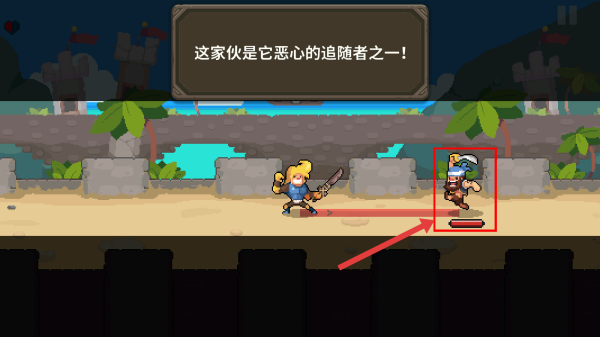 2、遇到敌人时,根据屏幕提示操作角色,攻击敌人,如击败“它恶心的追随者之一”。