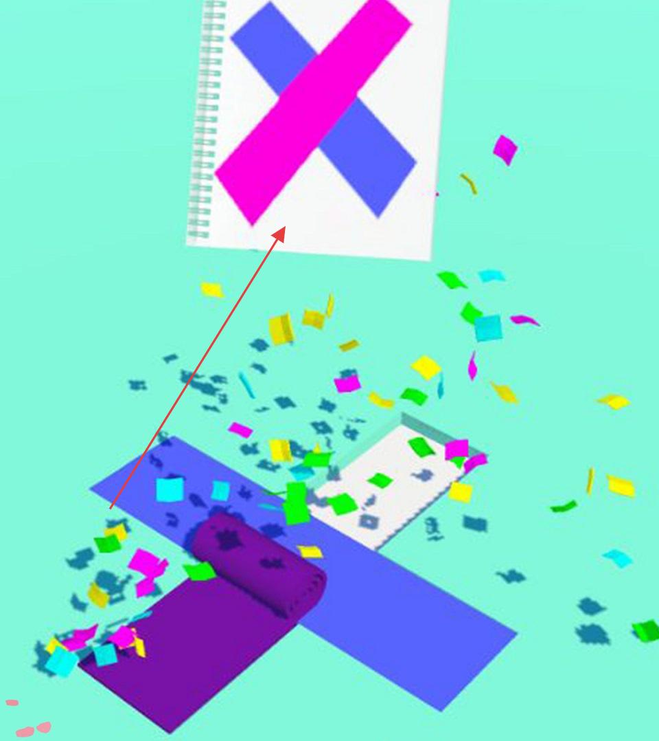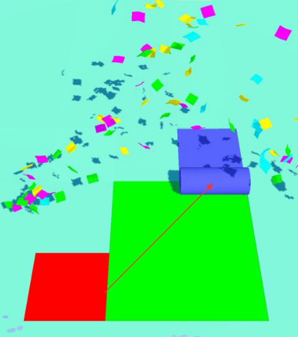 2、继续操作方块(如蓝色方块),通过移动和摆放,逐步构建出符合要求的形状或图案,期间会有彩色纸屑特效。
