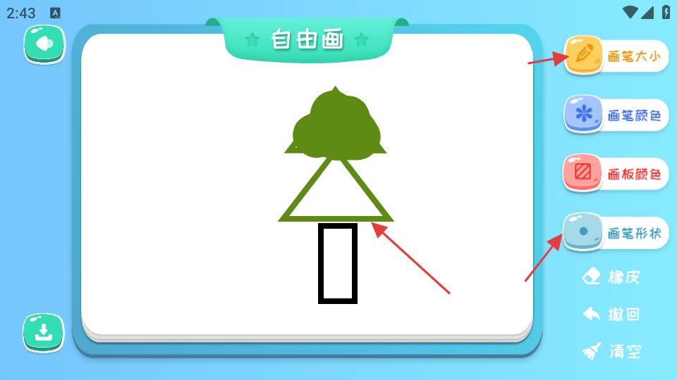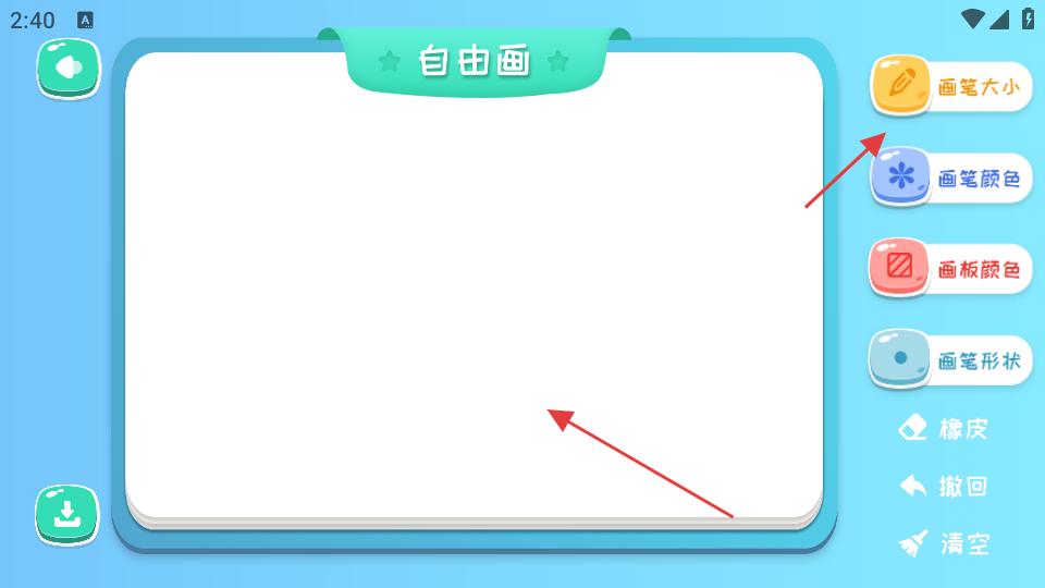 1、进入游戏主界面孩子可看到色彩缤纷的工具栏,点击选择心仪的画笔和颜色,在空白画布上轻轻滑动,开启自由绘画之旅。