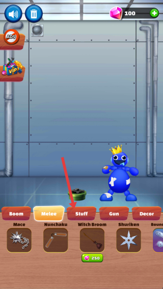 3、探索“Stuff”等其他分类下的道具,点击相应图标,观察蓝色角色与道具的互动效果,体验游戏玩法。