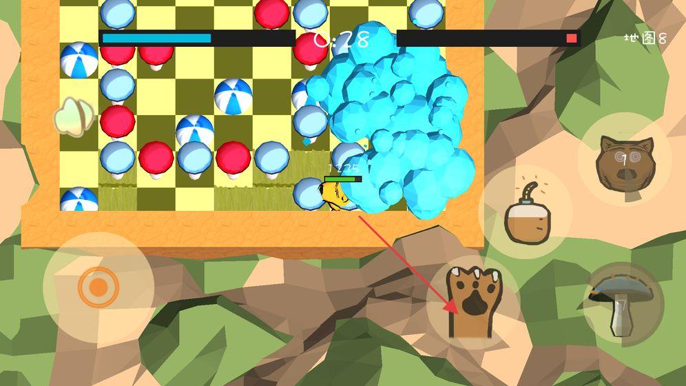3、团队协作攻防兼备:组队时明确分工,部分玩家负责击杀敌人获取蓝蘑菇,部分玩家专注围杀与占点,同时保护己方房子避免全毁触发爆炸,扩大优势或逆转战局。