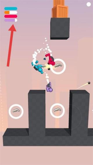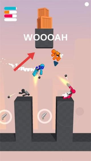 3、多元竞技的模式:支持1V1对决、2V2团队战与自由混战,竞技场地图各具特色(如漂浮岛屿、旋转齿轮工厂),利用地形高低差与障碍物掩体设计战术。