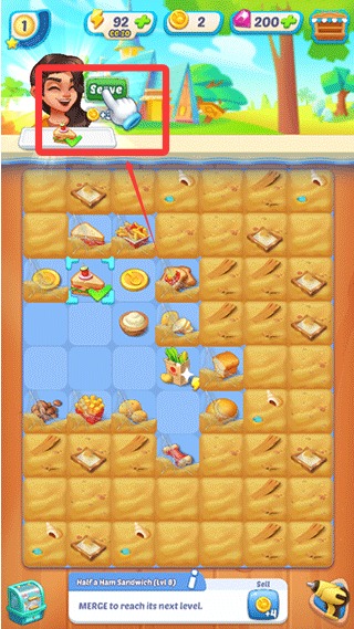 3、当合成顾客需要的餐品时,点击顾客边上的标识给她。