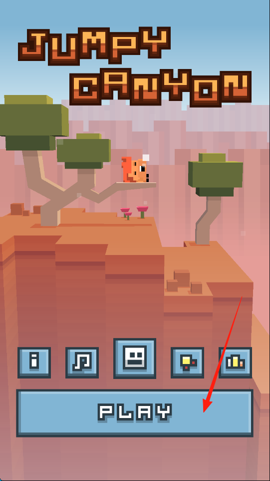 1、在游戏主界面,点击PLAY按钮,进入跳跃峡谷世界,操控角色开启冒险。