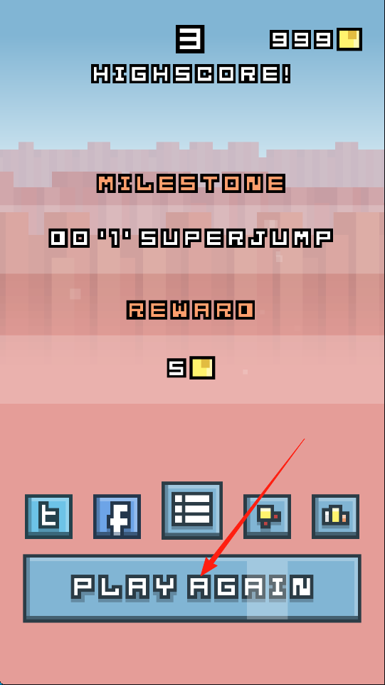 3、游戏结束后出现高分界面,查看MILESTONE成就和奖励,点击再玩一次重新开始。