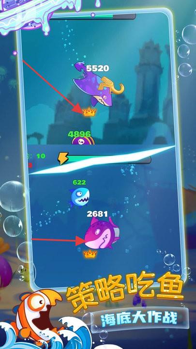 2、策略性生存:在吞食小鱼的同时,玩家需要时刻关注周围环境,小心其他大鱼的攻击,合理规划行动路线和时机,是生存和进化的关键。