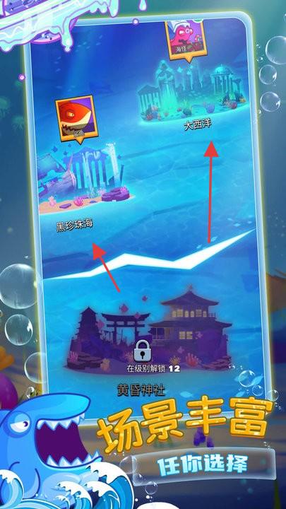 3、有多个海底场景,玩家达到一定等级,可解锁新场景,拓展游戏体验。