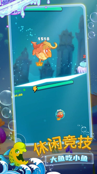 1、基础移动与吞噬:通过滑动屏幕控制小鱼的移动方向,接近比自己弱小的鱼类和水生物时,点击屏幕即可进行吞噬,吞噬成功后,小鱼将获得能量并逐渐成长。