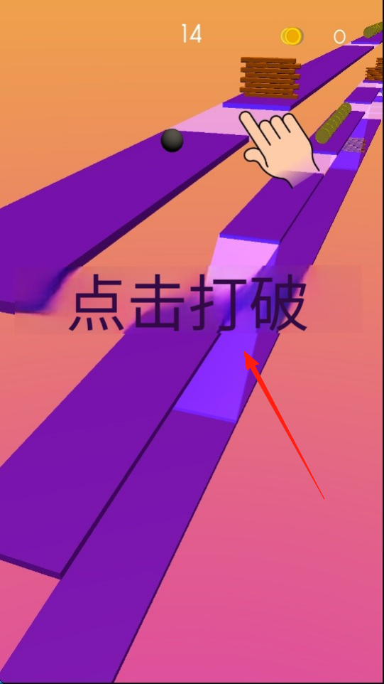 1、在游戏中看到黑色小球,依据点击打破提示,点击屏幕打破相关物体,推进游戏进程。