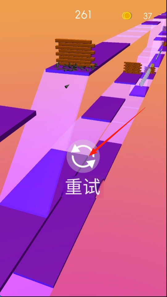 3、游戏失误后出现重试按钮,点击该按钮,重新开始当前关卡挑战,争取更好表现。