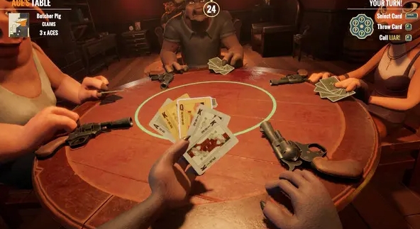 3、双重惩罚系统设计独特,左轮手枪与毒药机制形成不同风险层级的心理压力,玩家需要权衡说谎成本与收益。