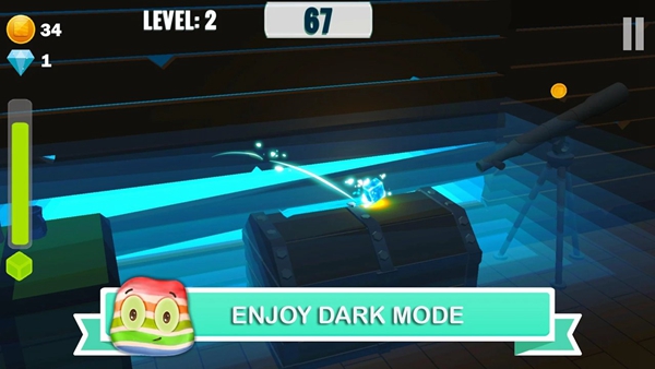 2、规划路线闯关:观察关卡布局,利用墙壁反弹与平台借力,避开旋转障碍与陷阱,规划最优路径抵达果冻罐完成关卡。