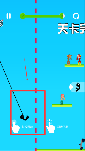 3、摆动到合适的位置以后,瞅准了角度,松开屏幕落下即可通关。