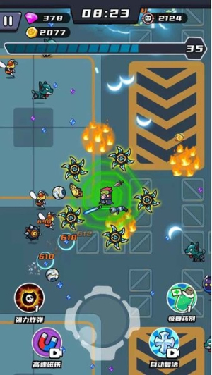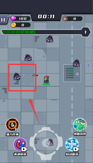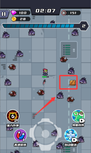 2、击败怪物掉落经验球要及时拾取,升到5级可以解锁第一个技能。道具选择优先考虑增加攻速和暴击率的,这样清怪效率更高。