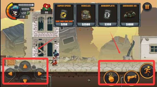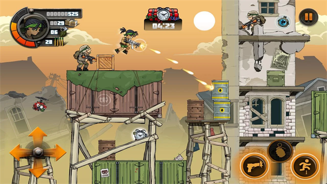 2、进入游戏关卡,通过移动角色,跳跃和攻击,使用不同的枪和手榴弹可以快速的消灭敌人。