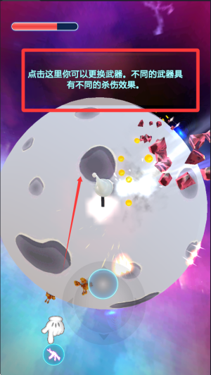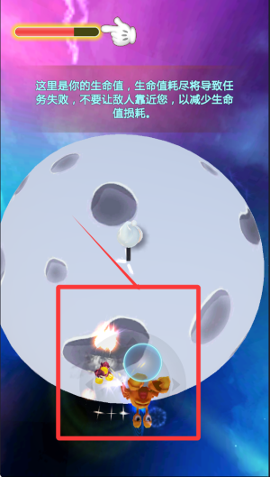 1、进入游戏后,玩家根据目标要求,点击屏幕完成目标锁定,对那些朝地球疾驰而来的行星进行破坏打击,以此保卫家园。