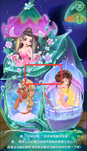 2、在三位精灵公主之间选择一个心仪的精灵,给他们美美的打扮吧。