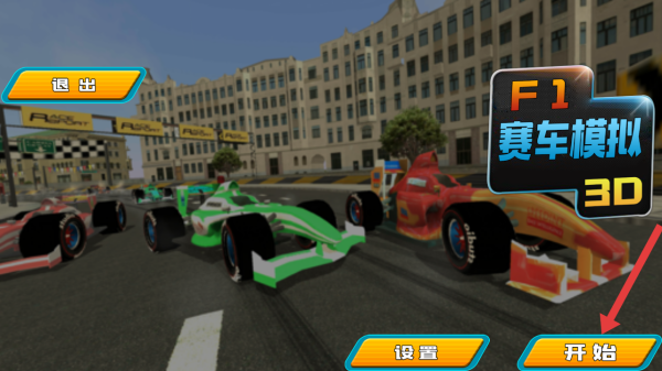 1、在游戏F1赛车模拟3D的主界面,点击右下角【开始】按钮,进入F1赛车模拟3D游戏,开启赛车之旅。