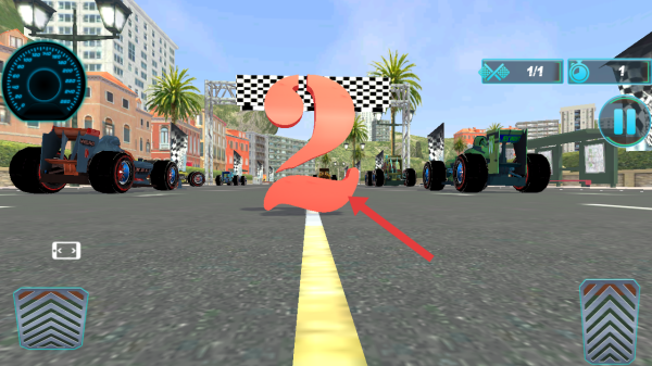 2、你需要等待倒计时结束后(如数字2显示时),准备操控赛车,倒计时结束后比赛正式开始。