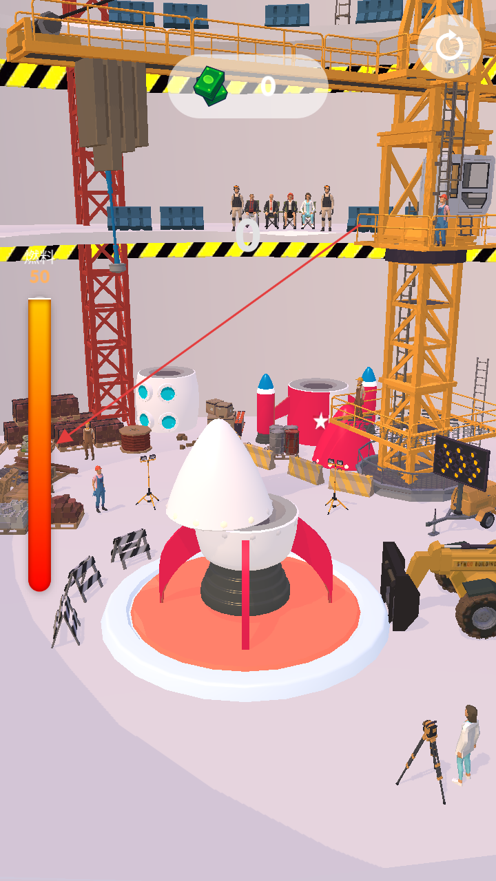 2、购买资源或用于火箭建造、发射准备,画面有火箭元素及燃料条显示数值(如50),玩家需关注资源状态适时操作。