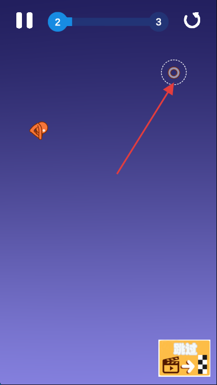 3、游戏过程中,操控橙色火柴人向目标圆圈移动,按提示完成跳跃等操作,也可点击右下角【跳过】按钮,推进关卡进度。