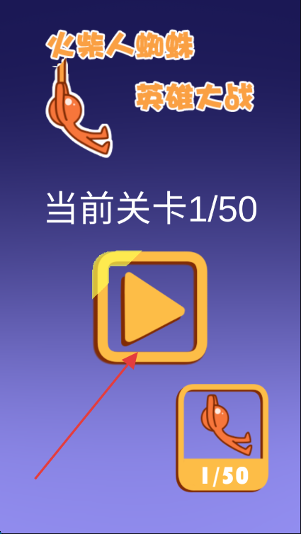 1、在游戏主界面,点击黄色播放按钮,开始【火柴人蜘蛛英雄大战】游戏,进入关卡1。