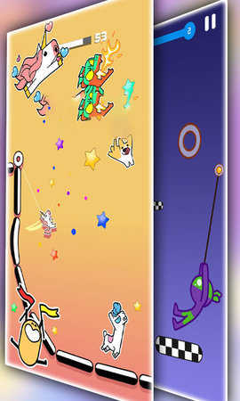 3、多样道具助力通关:提供丰富多样的游戏道具,如加速鞋、弹力跳板、蛛网发射器等,合理使用可大幅提升闯关效率,帮助玩家快速跨越障碍、甩开恶犬。