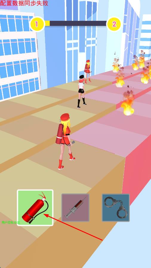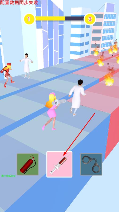2、当遇到特定障碍时,屏幕会提示可切换的职业,迅速点击选择,如护士职业可拿起针管消除障碍,完成变身后继续前行并收集道具。
