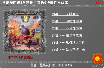 炮塔防御2六项属性修改器是专为策略游戏《炮塔防御2》打造的辅助工具。玩策略游戏,资源是最重要的。通过修改器,你可以获得无限的金钱,有了钱你就可以买各种资源、装备;还可以让建筑不花钱,无限建造防御体系。赶快下载体验吧!