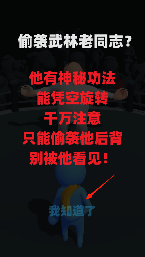 1、在游戏提示界面,阅读偷袭武林老同志相关规则,点击我知道了,进入游戏操作环节。
