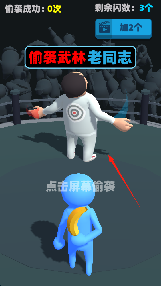 2、进入游戏场景,看到点击屏幕偷袭提示,找准时机点击屏幕,对目标人物进行偷袭。