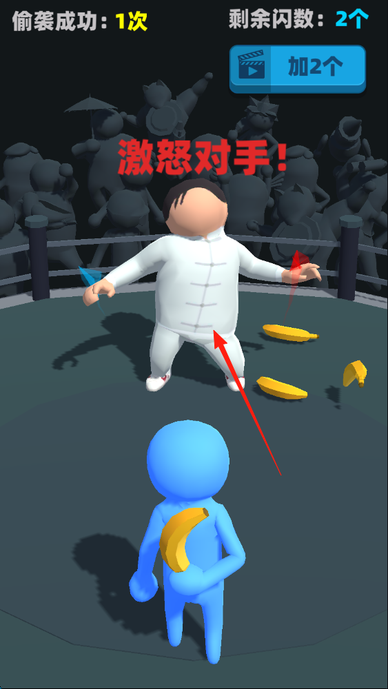 1、偷袭时机捕捉:观察前辈动作节奏,在其视线转向别处时快速点击屏幕投掷香蕉,利用死角实现有效攻击。