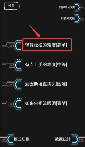 1、打开游戏后,分四个难度,新手建议选择简单难度。
