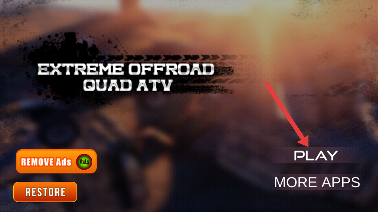 1、进入四人ATV车手的游戏界面,点击【PLAY】按钮开启游戏,这是进入游戏的第一步操作。