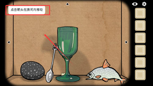 1、点击屏幕上面您的箭头在房间里四处移动,观看房间里的具体情况,方便后续游戏体验哦。