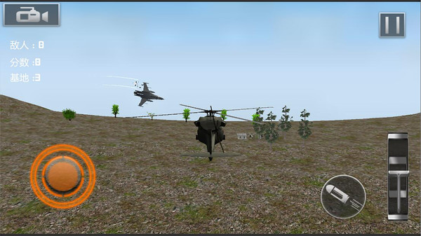 3、左下角控制飞机角度,右侧推杆控制速度,调整角度发射炮弹击落对手。