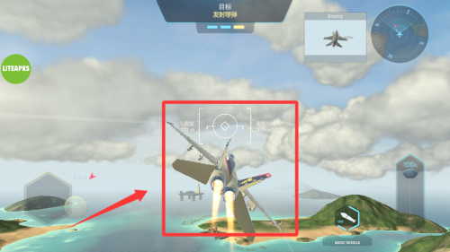 2、灵活操控战机躲避敌机攻击,利用翻滚和加速摆脱锁定。
