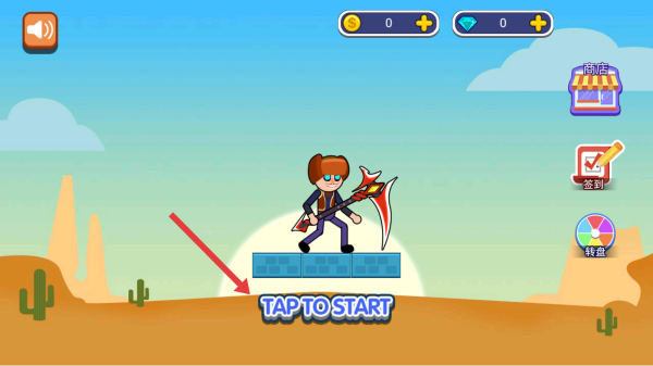 1、在游戏初始界面,点击【TAPTOSTART】按钮,启动游戏。