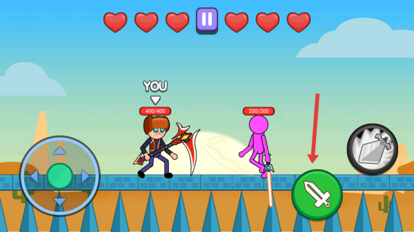 3、进入战斗场景后,通过左下角虚拟摇杆控制角色移动,靠近敌人,点击右下角攻击按钮(如剑形图标),对敌人发动攻击,击败敌人推进关卡。