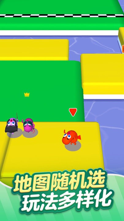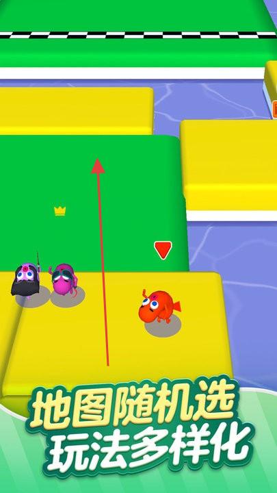 1、玩家操控卡通角色参与比赛,在不同颜色和布局的赛道上与其他角色竞争,争取更好名次。