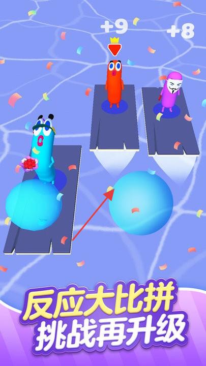 3、游戏设置多种挑战机制,考验玩家的反应速度,如在特定时刻躲避障碍物、快速移动到指定位置等。