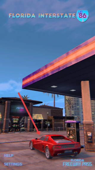 1、在游戏起始界面(加油站场景),点击红色跑车,进入驾驶模式。