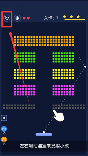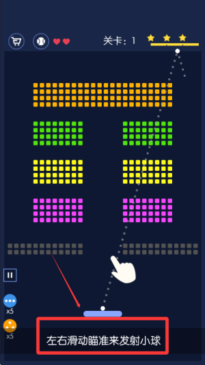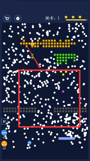 3、天上击落的彩色方块,会掉落道具,拾取后会放射无限的其余白球。