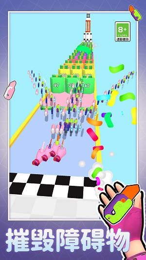 1、创新性玩法融合,将跑酷的节奏感与射击的爽快感完美结合。角色自动前进的设计让玩家专注武器操作,在高速移动中体验精准射击的乐趣。