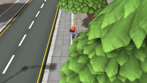 1、清新画风校园急行:采用清新明快的2D卡通画风,干净的城市道路、色彩鲜艳的建筑与Q版小学生角色相映成趣,搭配晨起阳光洒路的背景特效。