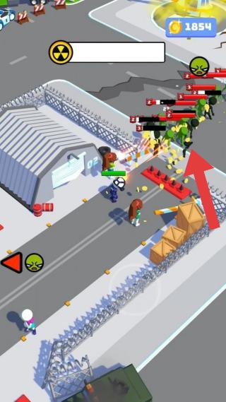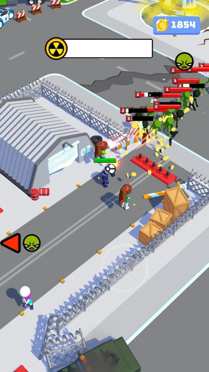 2、玩家置身危机四伏的街区,操控角色对抗成群绿色敌人,收集金币与资源,利用武器摧毁敌人、躲避危险,体验快节奏生存挑战。