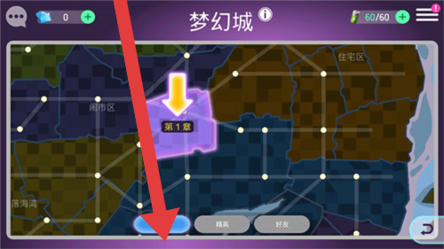 2、在地图界面(第二张图),选择箭头指向的关卡(如“第1章”),点击下方按钮进入关卡详情。