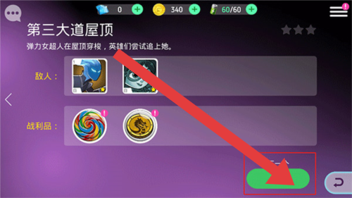 3、进入关卡详情后(第三张图),点击绿色按钮(箭头指向)开始战斗,操控角色在第三大道屋顶。